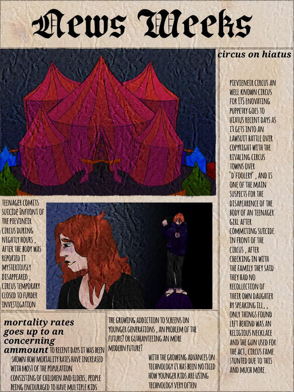 • the suicide that happened I front of the circus. on the weekly news an document came out showing how the body disappeared